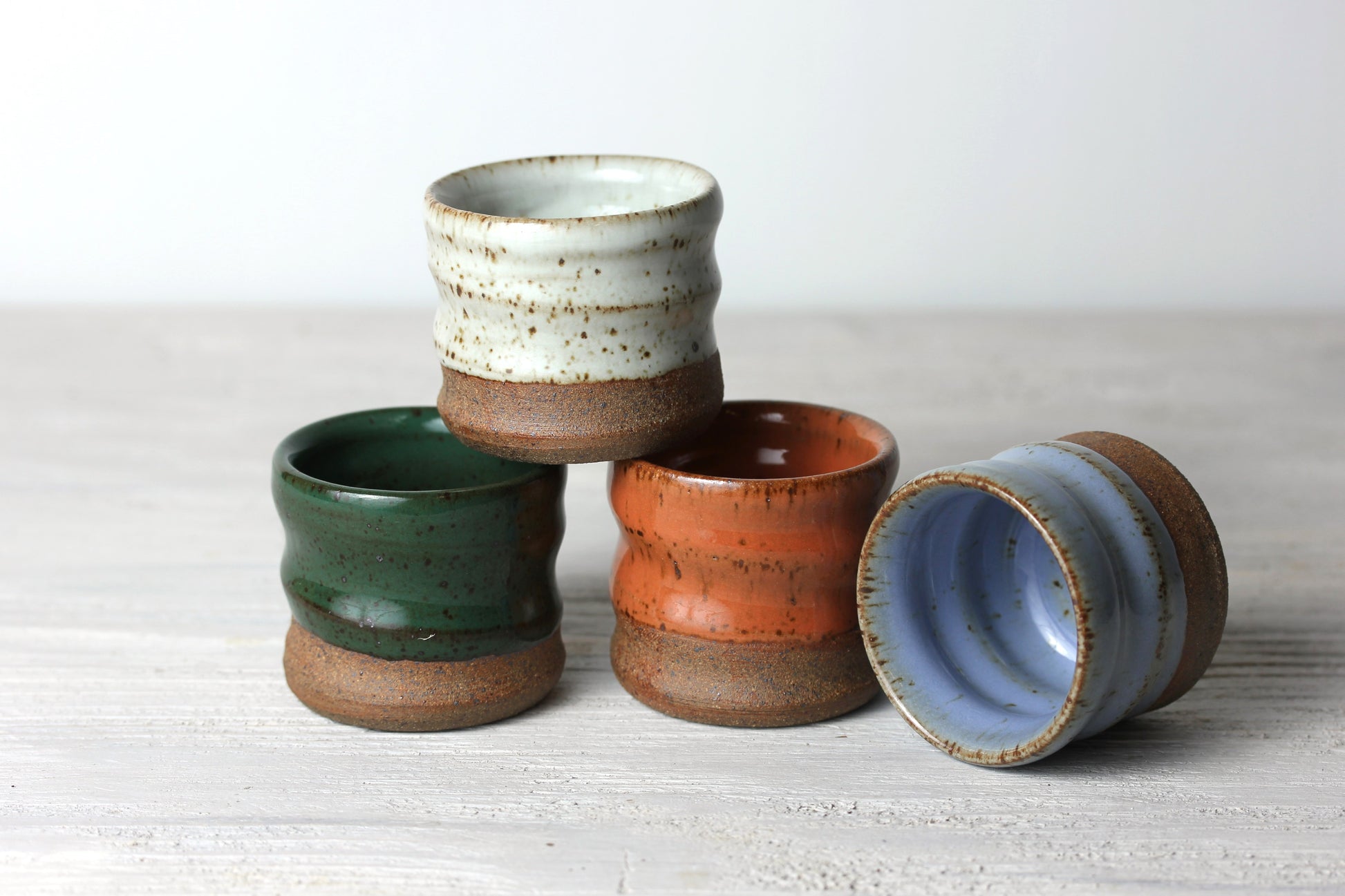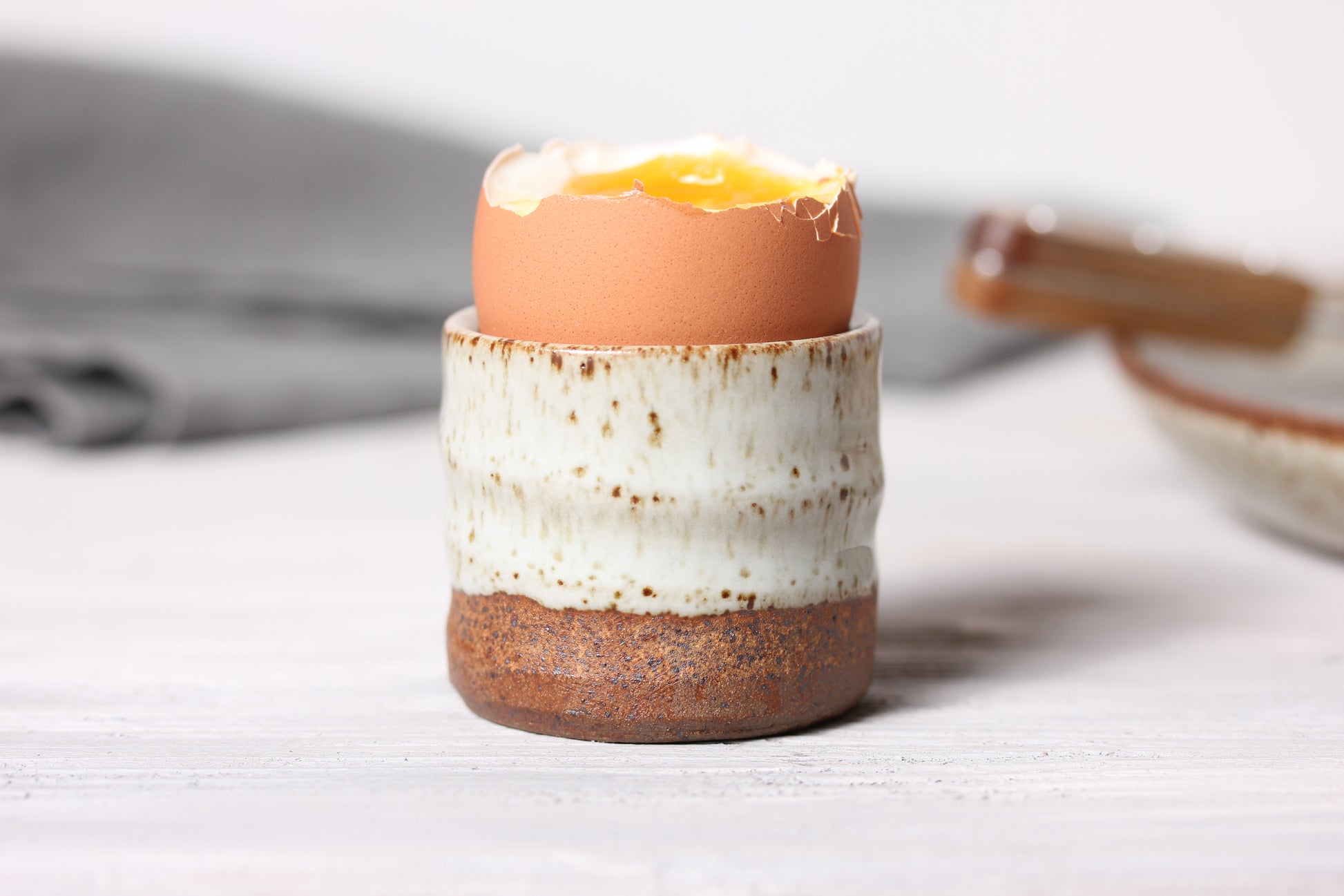 Fancy starting your day with a little bit of handmade charm? Well, these aren't your run-of-the-mill egg cups, oh no! Each one is lovingly coaxed into shape on the potter's wheel from a wee lump of stoneware clay – just my fingertips doing their thing. You might notice they've got a bit of a wobbly personality, not perfectly straight, but don't you worry, that top ring is spot on for cradling your precious dippy egg.